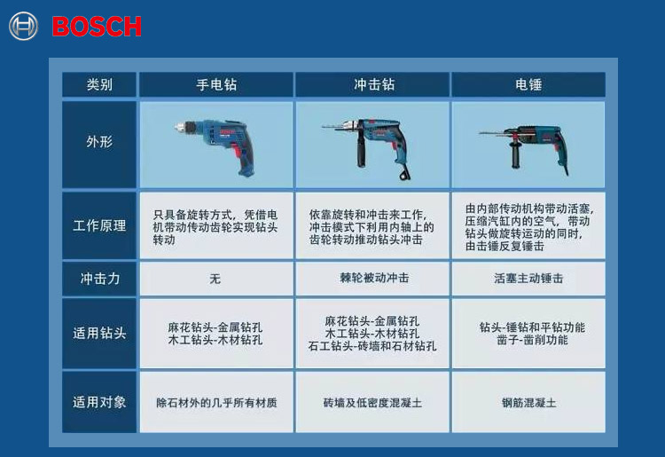 亮河電工工具小知識-博世手電鉆、沖擊鉆、電錘、傻傻分不清楚?