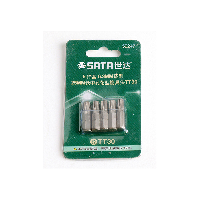 世達(dá)5件套6.3MM系列25mm長(zhǎng)中孔花型旋具頭T25 |