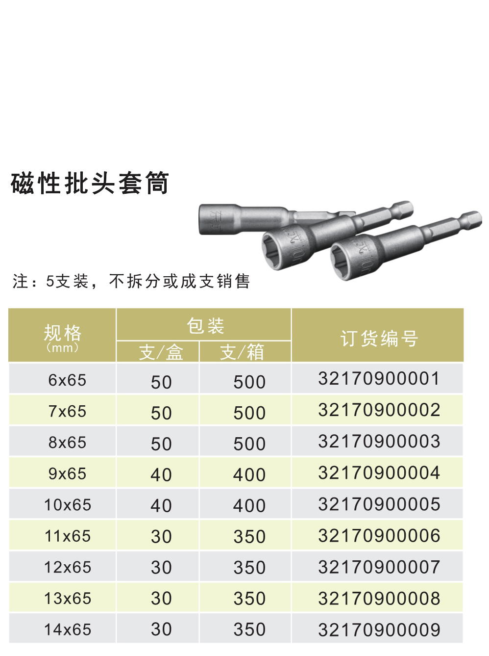 首頁>產品中心>螺絲批>旋具頭、批咀>東成磁性批頭套筒9x65