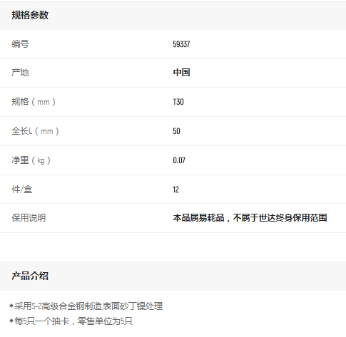產(chǎn)品名字:世達(dá)5件6.3mm系列50mm旋具頭T30