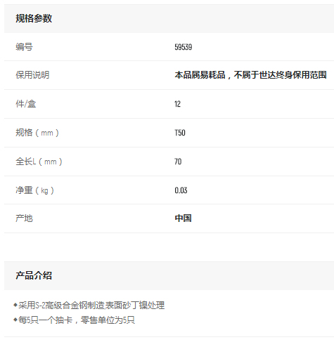 產(chǎn)品名字:世達5件套8MM系列70mm長花型旋具頭T50