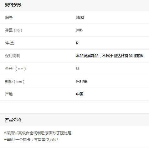 產(chǎn)品名字:世達(dá)6.3MM系列65MM長(zhǎng)雙頭旋具頭PH3-PH3