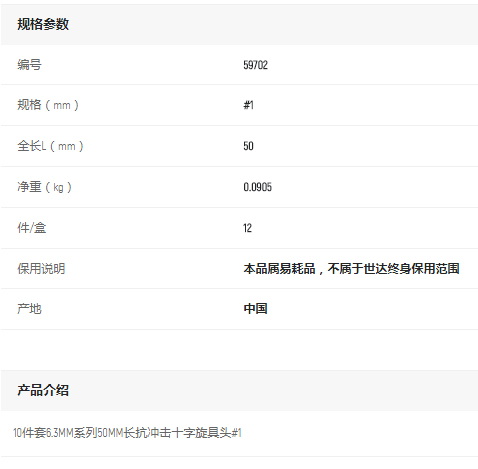 產(chǎn)品名字:世達(dá)10件套6.3MM系列50mm長(zhǎng)十字旋具頭#1