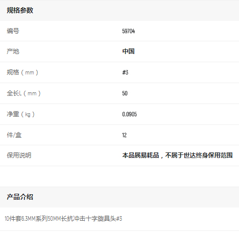 產(chǎn)品名字:世達(dá)10件套6.3MM系列50mm長(zhǎng)十字旋具頭#3