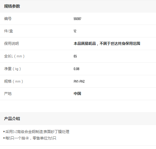 產(chǎn)品名字:世達6.3MM系列65MM長雙頭旋具頭PH1-PH2