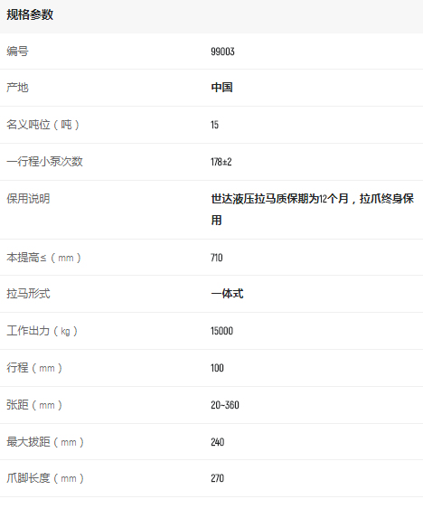 產(chǎn)品名字:世達一體式液壓拉馬15噸