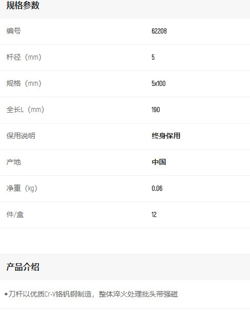 首頁>產(chǎn)品中心>螺絲批>一字螺絲批>世達(dá)A系列一字批5x100mm