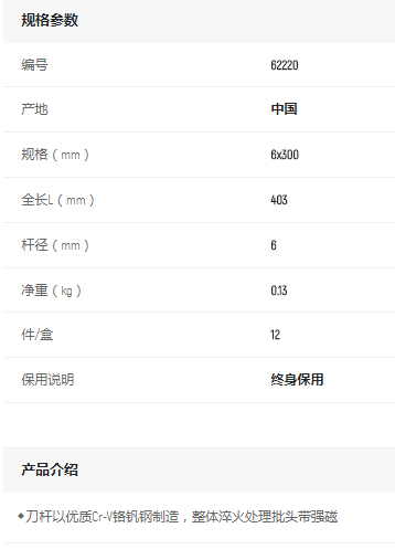 首頁>產(chǎn)品中心>螺絲批>一字螺絲批>世達A系列一字批6*300mm