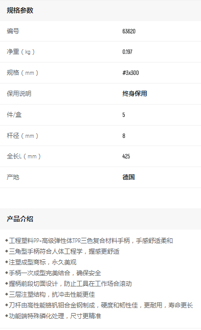 產(chǎn)品名字:世達G系列雙色柄十字形螺絲批3*300
